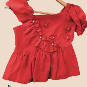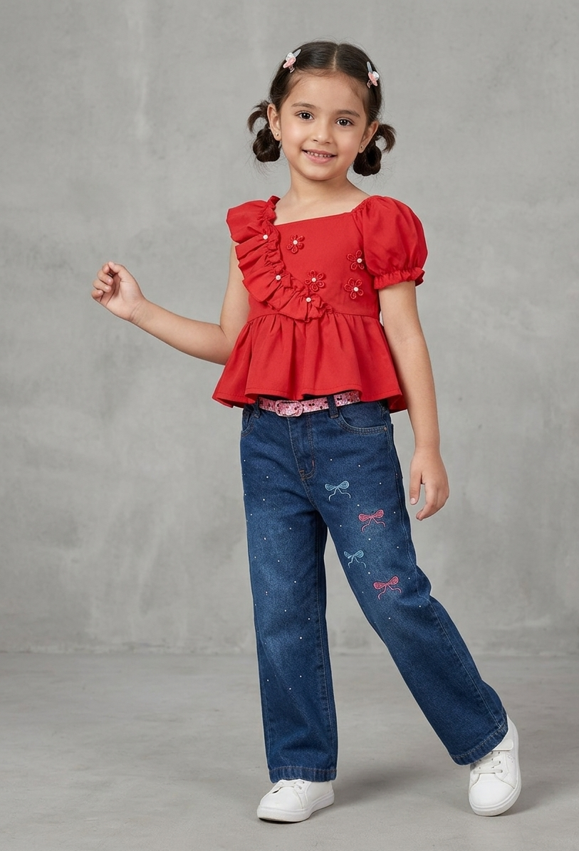 Set de 2 Piezas: Blusa Roja con Vuelos y Jean